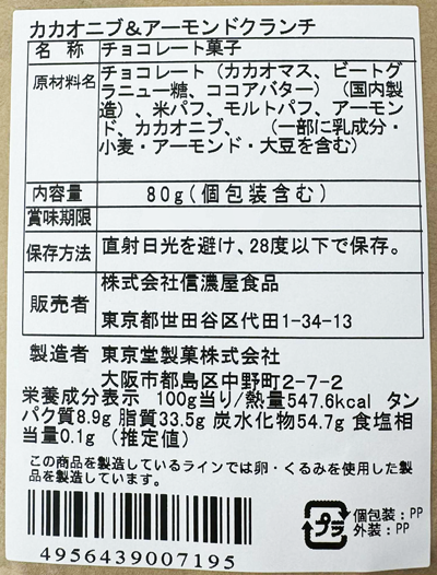 カカオニブ&アーモンドクランチ(80g)信濃屋【20/食品】
